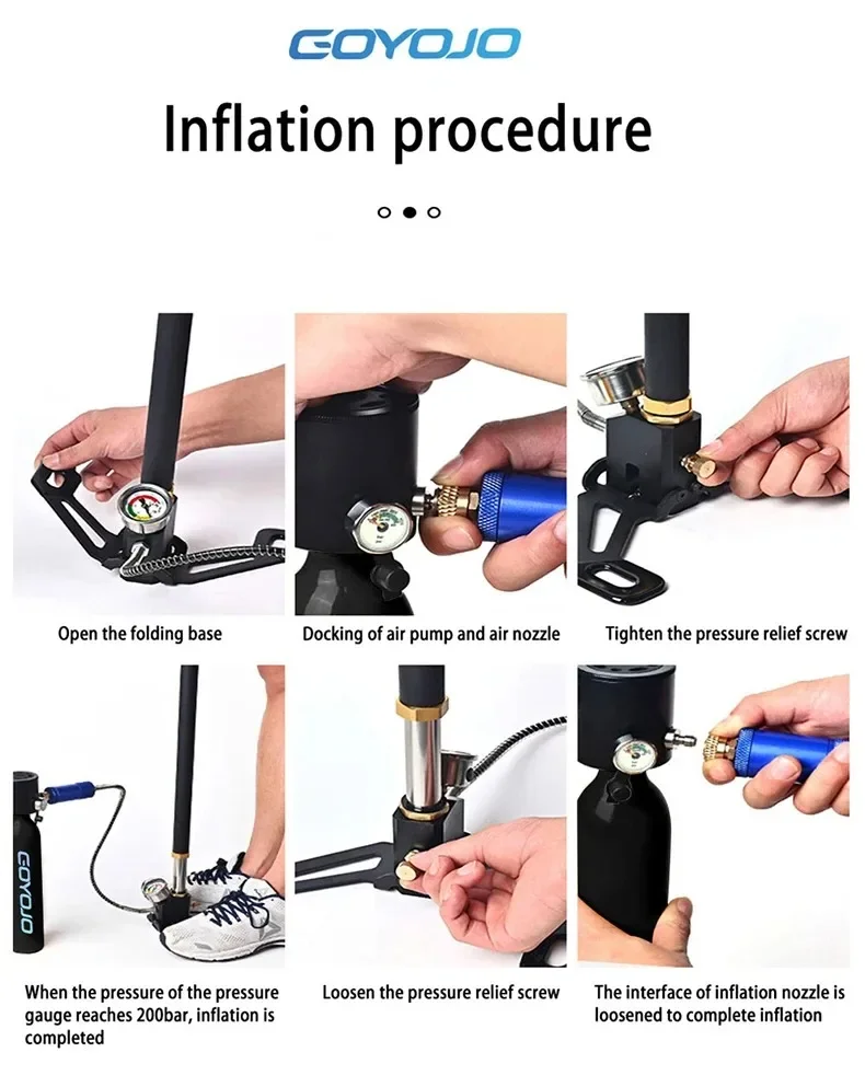 Safety and Customization: Features a professional-grade dust cap for nozzle protection. Offers three inflation options for different scenarios, with a maximum inflation pressure of 3000PSI/200BAR/20MPA.