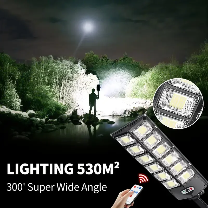 1Pc Ip65 Waterproof Solar Street Light Outdoor 6500K 100000Lm High Brightness 504 Led Solar Parking Lot Light, with Foldable Bracket Solar Flood Light (Wide Angle Motion Sensor Remote Control), for Commercial Area Lighting, C