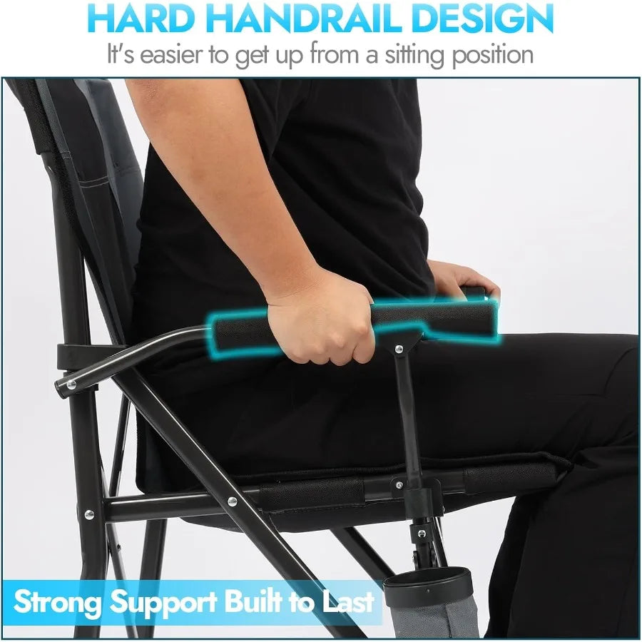 【Easy to Carry and Universally Applicable】This folding chairs for outside is easy to set up with no assembly required – Just unfold and enjoy. Its compact foldability makes storage and transportation a breeze, weighing only 9.5 pounds and accompanied by a carry bag for added convenience. Suitable for camping, sports events, picnics, concerts, or any backyard leisure time