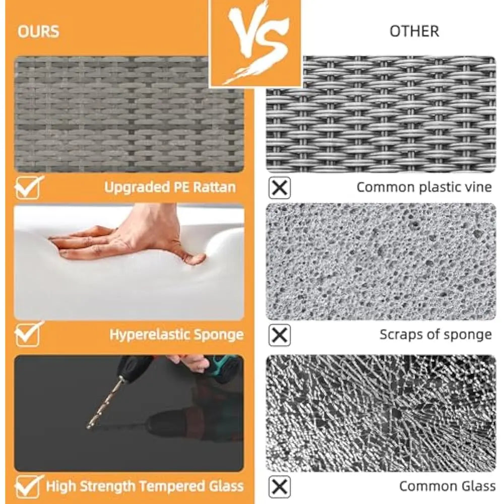- Sturdy&Long-lasting Patio Furniture: Solid metal structure make it super safe to sit in the sofa set. Added strong steel for the frame enhance the sturdiness and allow the sofa to support heavy people about 400lbs. PE Wicker rattan is strong enough to survive inclement weather and guarantee the Patio Furniture Sets has a long service life.