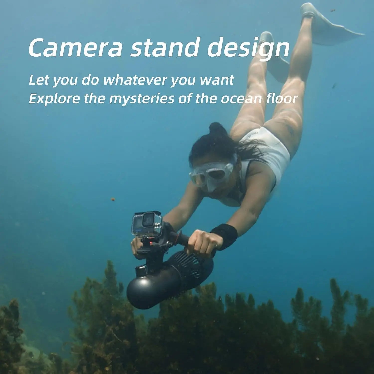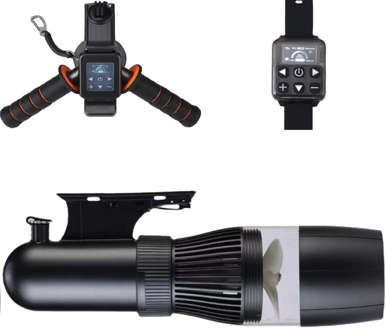 CM5-1 brings you more underwater fun, from snorkeling to paddle boarding and even pool scooters.The CM5-1 is so easy to operate that kids can join in the fun too. The watch-style design makes it easy to maneuver it, while you can also operate the remote control unit by mounting it in the waterproof compartment of the handheld grip. Two operating modes increase its maneuvering options in different environments.With the mount on the hand grip, you can install an underwater camera.