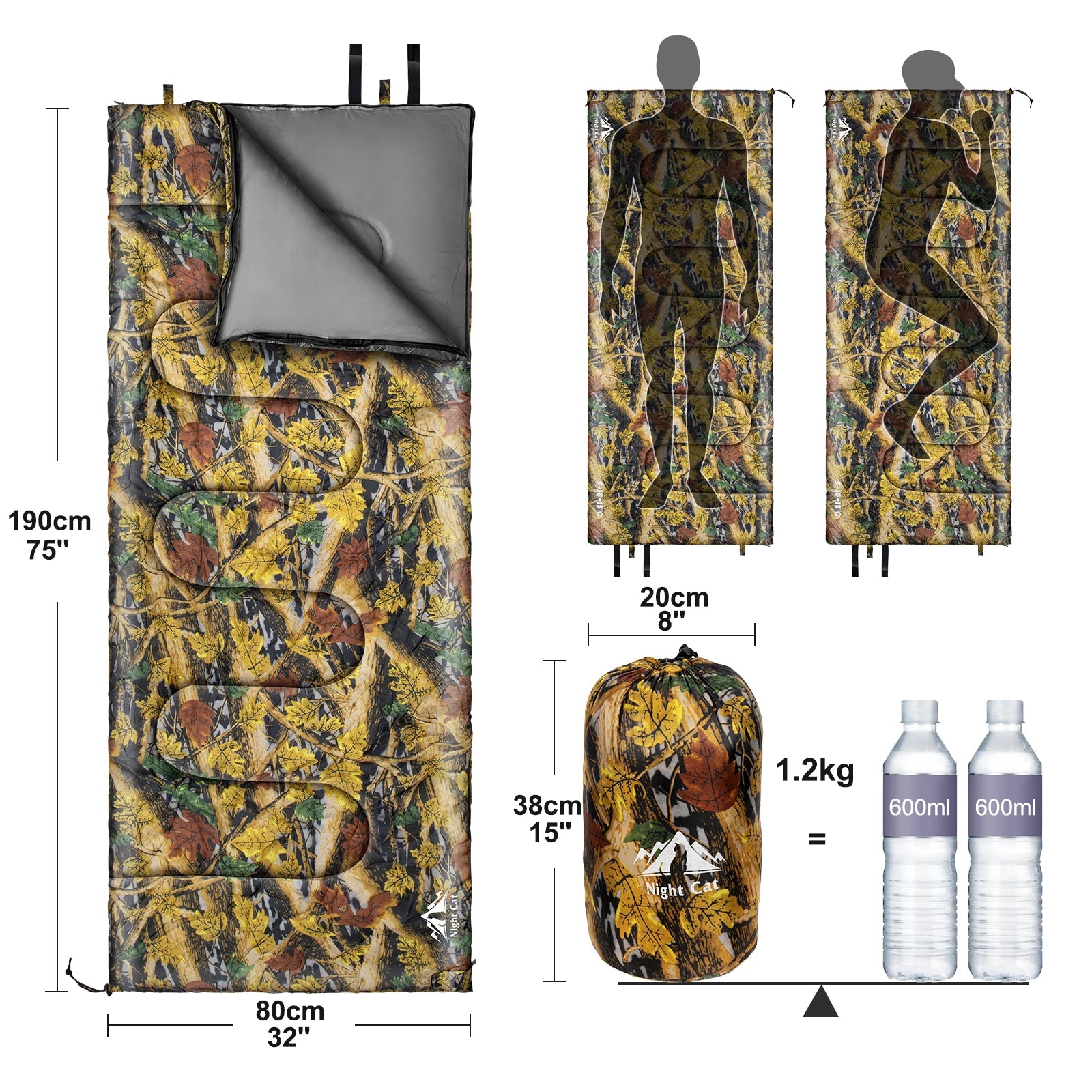 【3 Seasons Sleeping Bag】This Night Cat sleeping bag is used for 3 seasons with a design temperature of 41℉- 59℉(5℃-15℃). They are designed to provide warm sleeping and good rest after a full day of outdoor activities during Spring, Summer, Autumn.