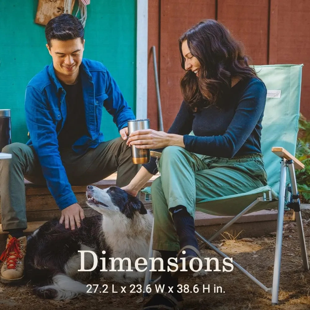 This product features a lightweight steel-reinforced aluminum frame, making it easy to carry at just 10.6 lbs. It is designed to be sturdy, capable of supporting up to 250 lbs. The chair boasts an elevated design with natural wood armrests that are both functional and aesthetically pleasing. For comfort, the seat is adjustable with three different recline settings. The high-quality polyester seat material ensures durability and comfort.