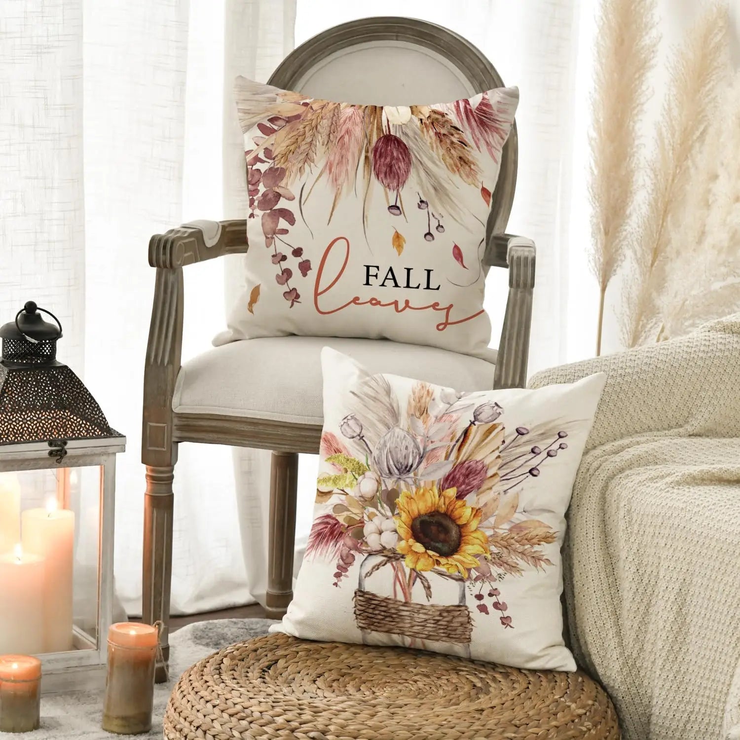 colorlife Fall Pumpkin Wheat Cotton Jar Autumn Thanksgiving Throw Pillow Covers, 18 x 18 Inch Seasonal Cushion Case for Sofa Cou