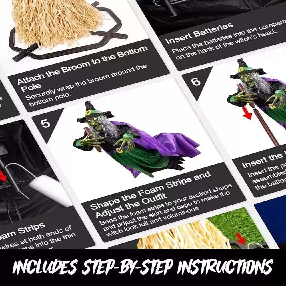 4. Versatile Indoor and Outdoor Display: Showcase this animated witch decor indoors or outdoors with ease. Whether placed in your garden, on the lawn, or inside your home, the flying witch creates a spine-chilling atmosphere wherever it's displayed.