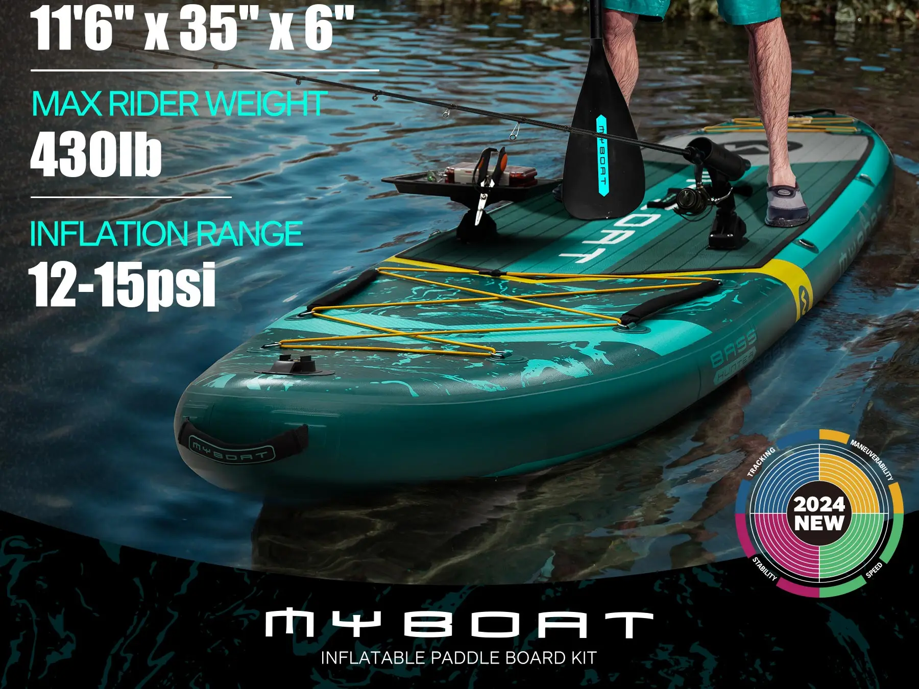 Myboat BASS HUNTER Green SUB Waterproof Inflatable Paddle Board 11'6''x35''x6'' Aquatic Fishing With Accessories SUP сапборд