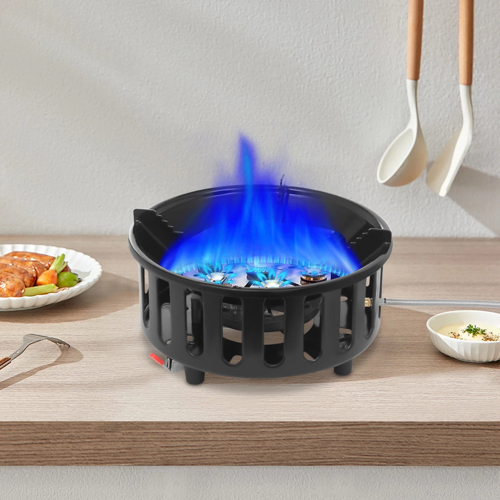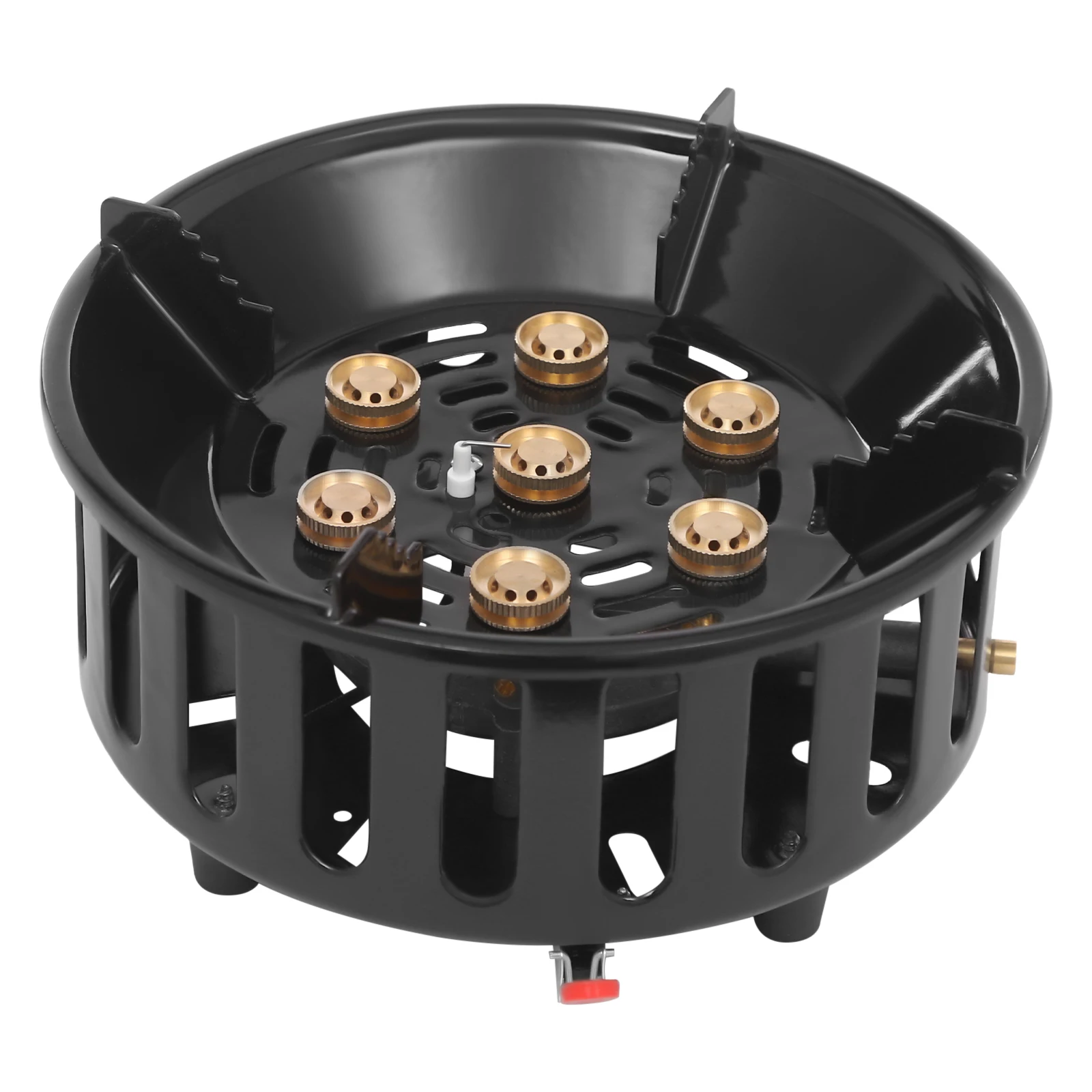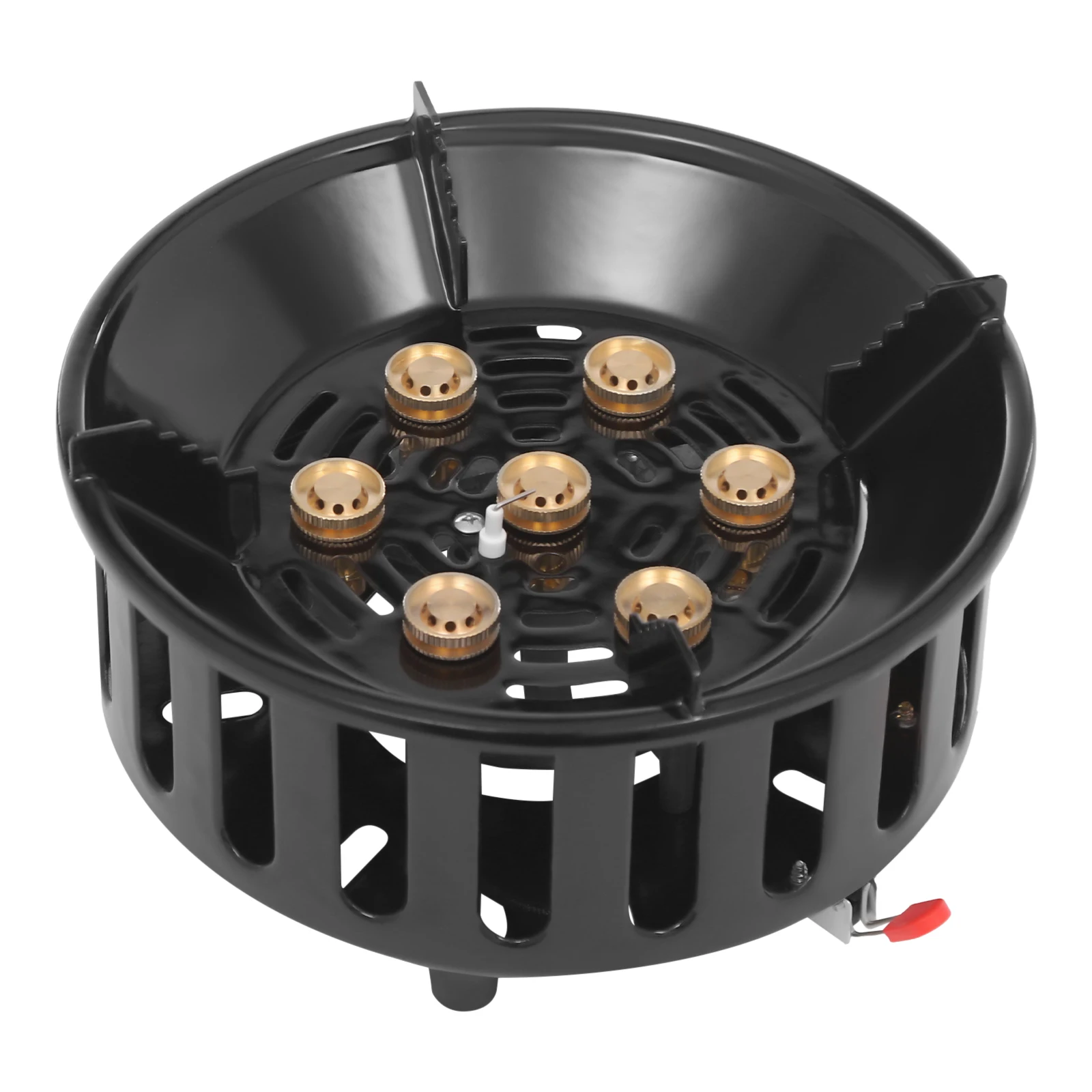 High Efficiency: Equipped with 7 burner heads and advanced combustion technology, it delivers a powerful 72,000 BTUs of firepower and takes about 1 minute and 40 seconds to boil 0.22 gallons of water at 68℉ (for reference). The electronic ignition method, combined with the windproof ring design, can realize efficient flame combustion, saving fuel and time.