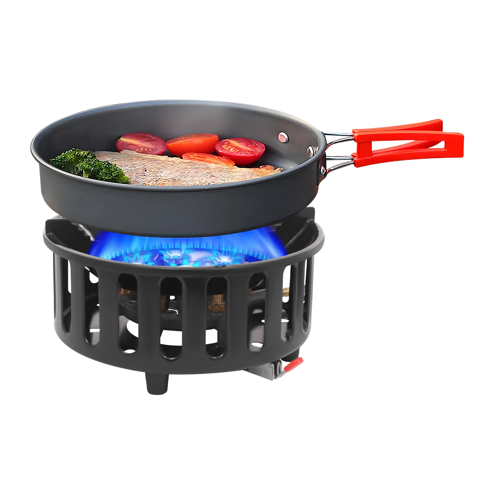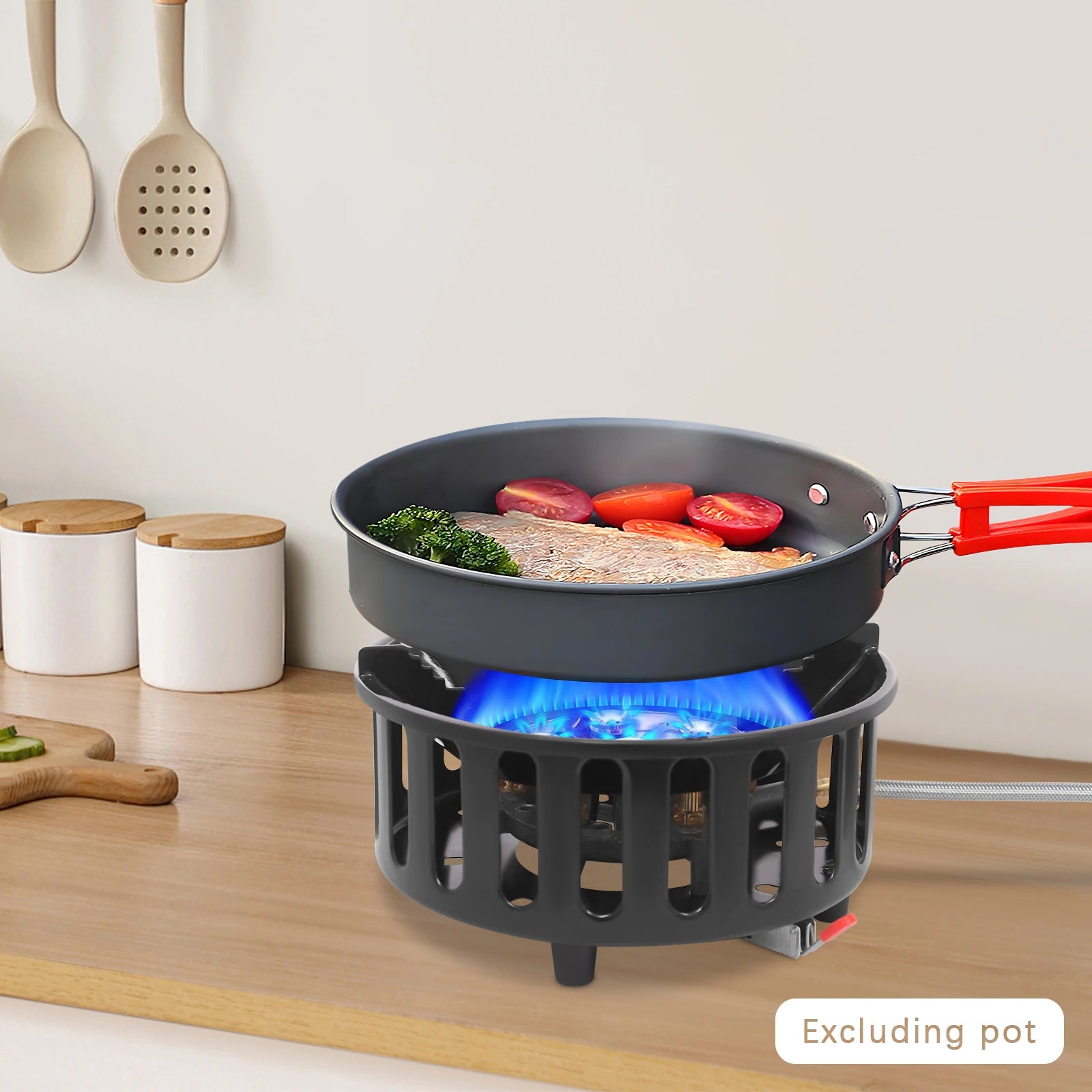 It is compatible with 8.46-9.06-inch pots and pans and a variety of gas canisters and can be used for frying, sautéing, deep-frying, steaming, and boiling, suitable for travel, camping, picnic, party, and so on.