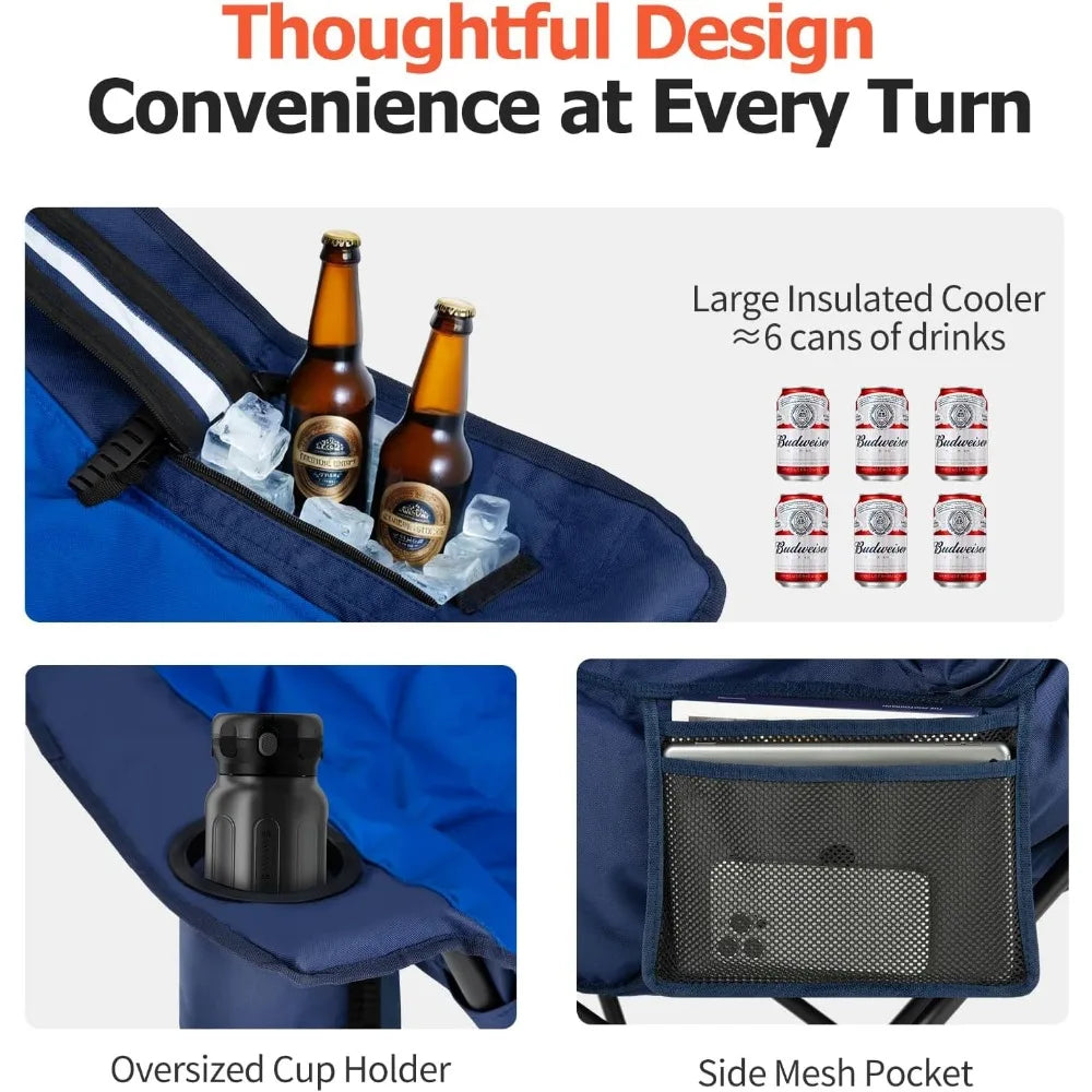 Oversized XL Camping Chair for Adults - 450lbs Support Heavy-Duty Padded Folding Chair with Side Pocket Cup Holder Cooling Bag