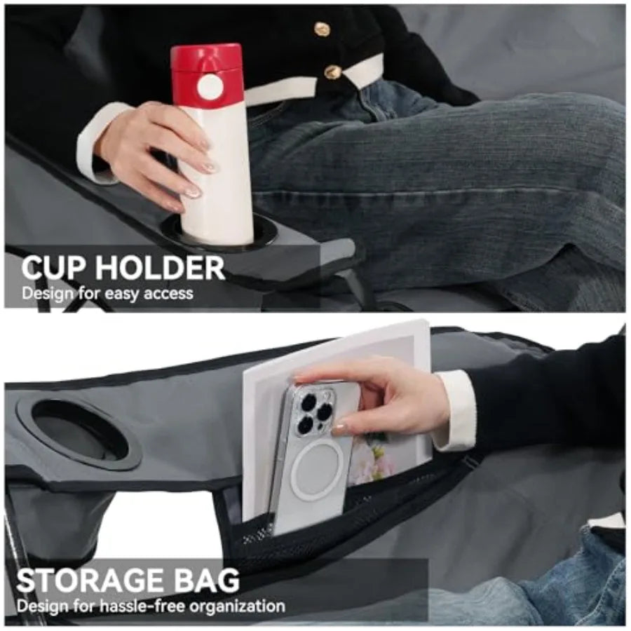 Seating and Reclining Design: This reclining camping chair has a reclining feature with an adjustable back, which allows you to switch between seating and reclining with ease. Whether you want to sit and enjoy the outdoor scenery, or cozy lying down to relax and body and mind, can be perfectly satisfied