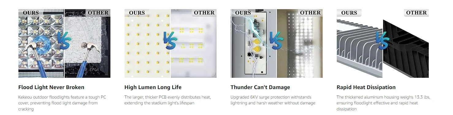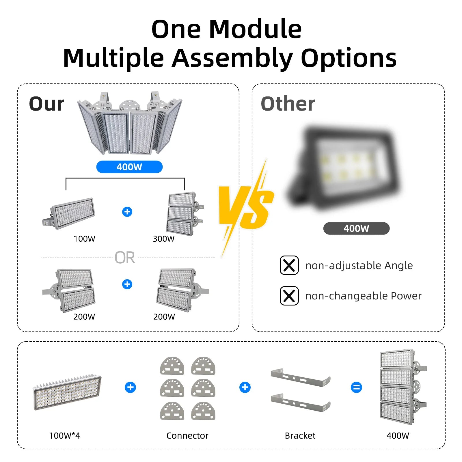 Stadium Lights LED Flood Light Outdoor Field Lights 400W Exterior 44000LM 6500K IP67 Waterproof Adjustable Lighting Arena Lights