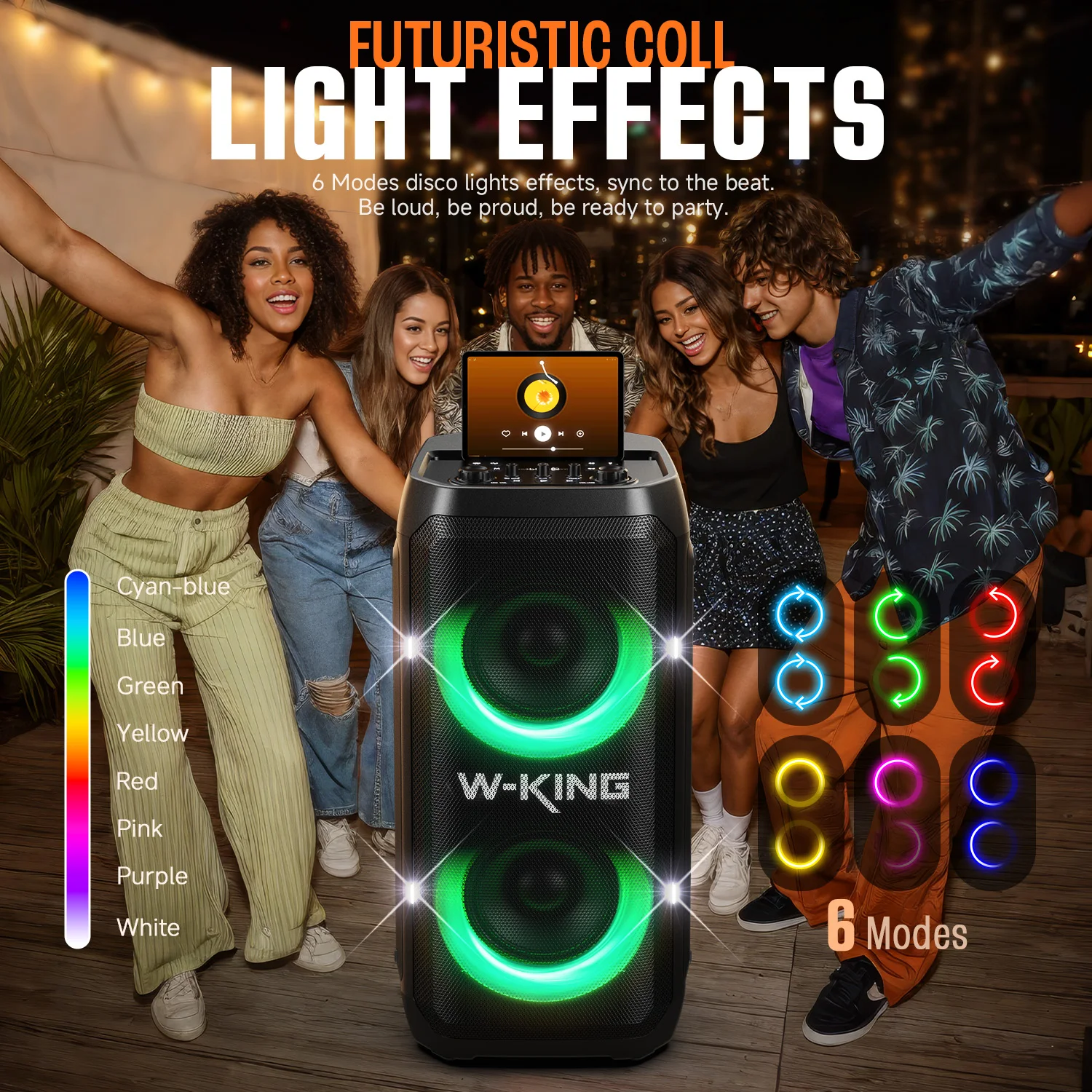 W-KING T12 Tragbare Bluetooth-Lautsprecher-Box mit 370W MAX Pro Sound, Lichtshow, CSB, Bass Boost, Rollen und Teleskopgriff