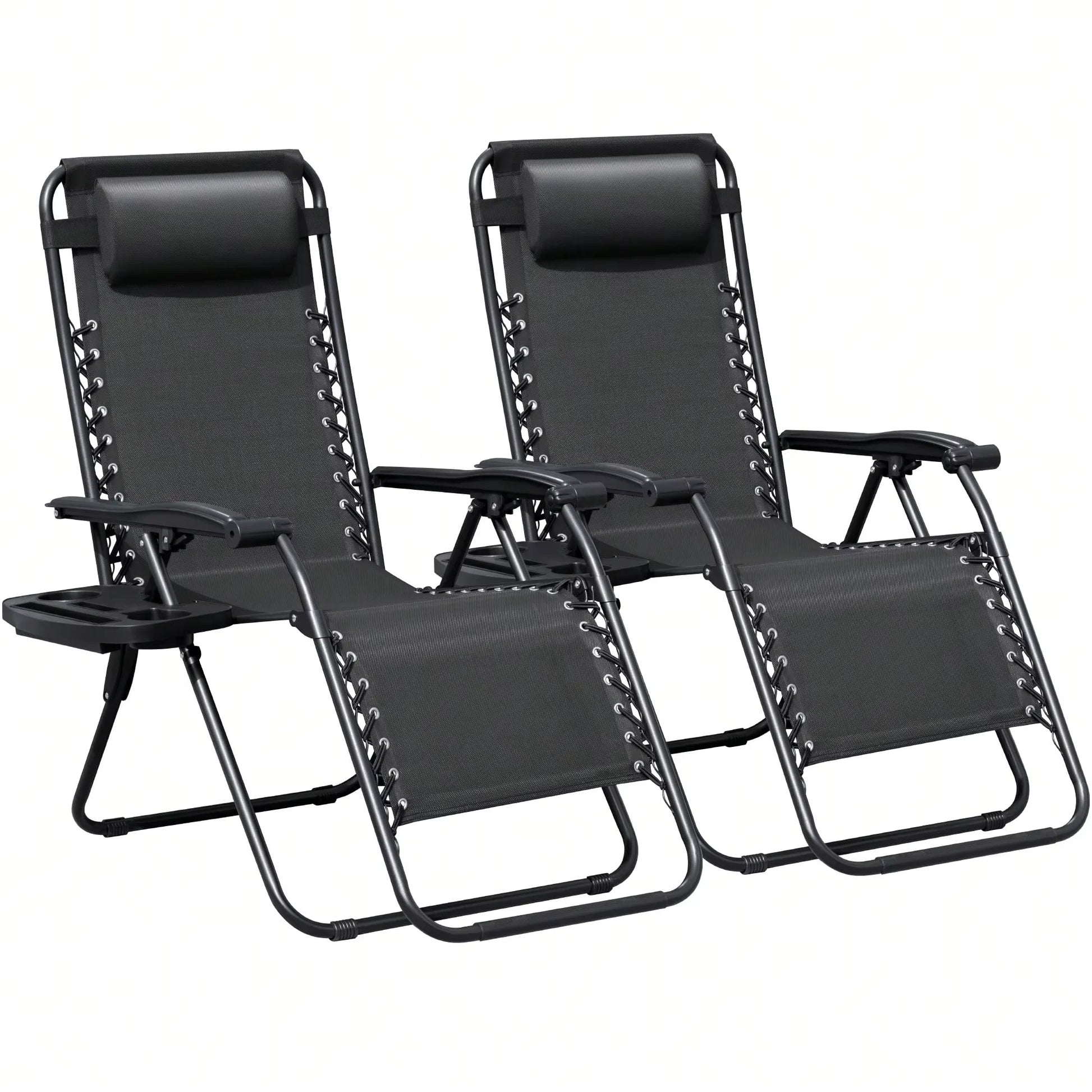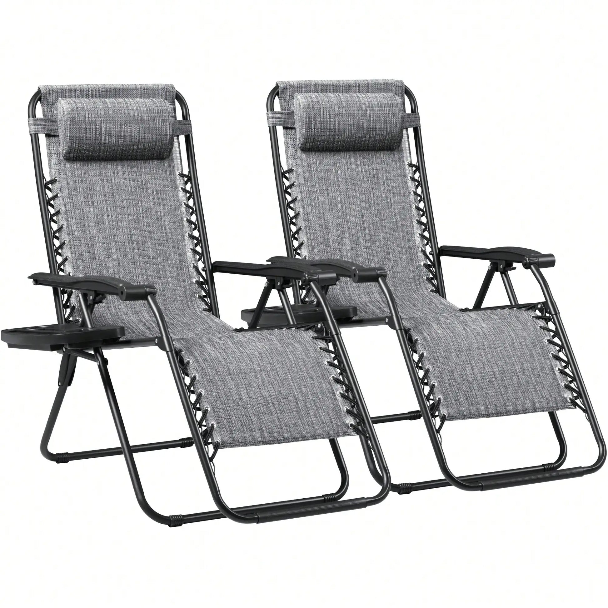 Zero Gravity Chairs 2 Pack, Foldable Outdoor Reclining Lounge Chairs with Headrest for Patio Lawn, Beige